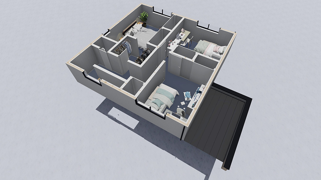 三次元BIM設計T-BOXは、革新的なBIM(Building Information Modeling)技術を活用した家づくりをしています。BIMは家づくりを根本から変える最先端の設計技術。二次元設計の平面図や断面図では見えにくかった部分も、建てる前に3Dモデルで立体的に確認できるので、イメージ違いや施工後の不具合を防ぎ、高品質な家づくりを実現します。