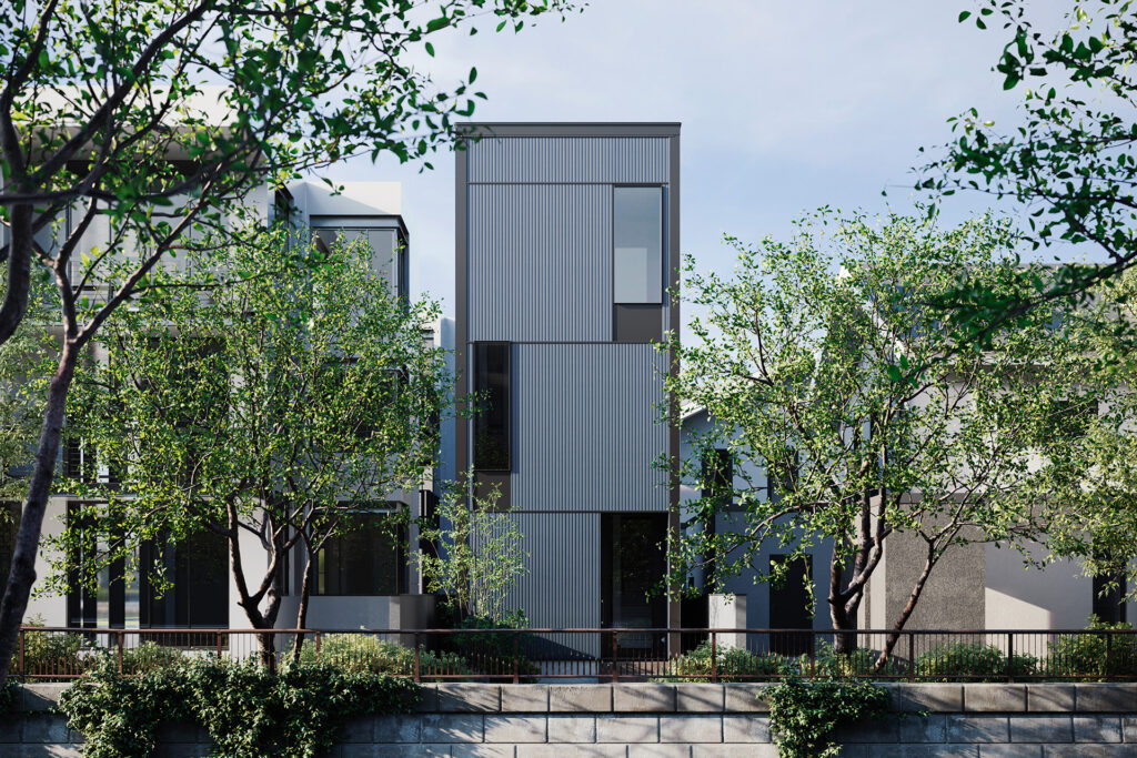 「狭い=制限」ではなく、狭いからできるデザインと機能性を追求しました。2Fに3LDK+Sの間取りを設けるなど、狭小地であることを忘れるゆとりが感じられます。 また、室内に効率的に採光できるような窓配置にすることで自然光たっぷりの明るさ。建物の輪郭を強調することで建物の幅が狭いことを感じさせないファサードに仕上げています。