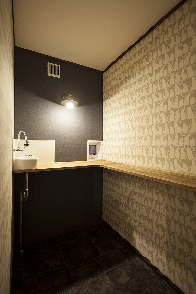 • ペット専用の食事やトリミング専用に使えるシンク付きルームを設置。猫ちゃん用には自由に出入りできるペットドアを設けています。