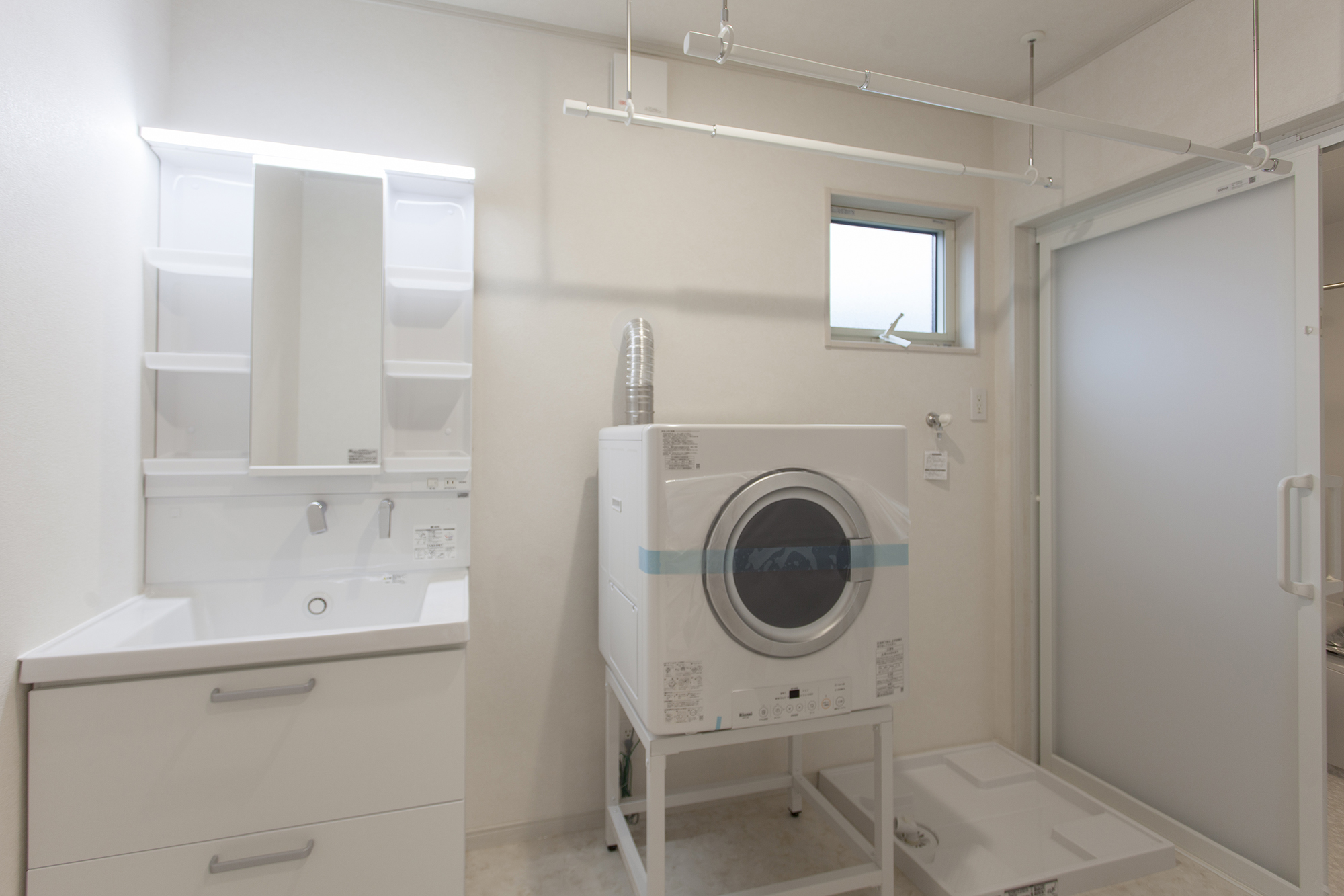 • お一人暮らしですが洗面脱衣室はしっかりと3帖確保し、洗濯機・ガス乾燥機・物干しスペースを1つの部屋に納められるように。黄砂や花粉、梅雨の時期は特に役立ちます。
